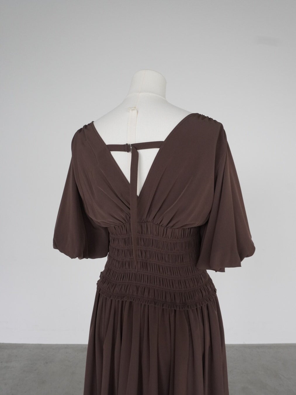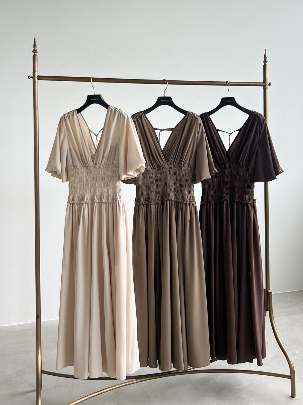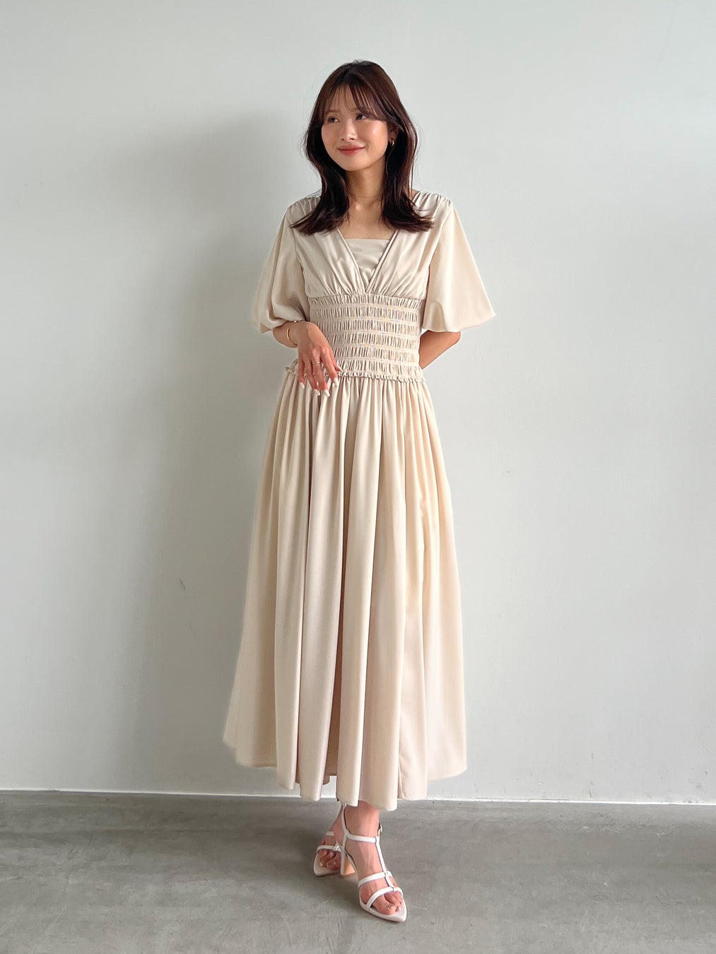 ②Vネックシャーリングワンピース ¥19,800(税込)