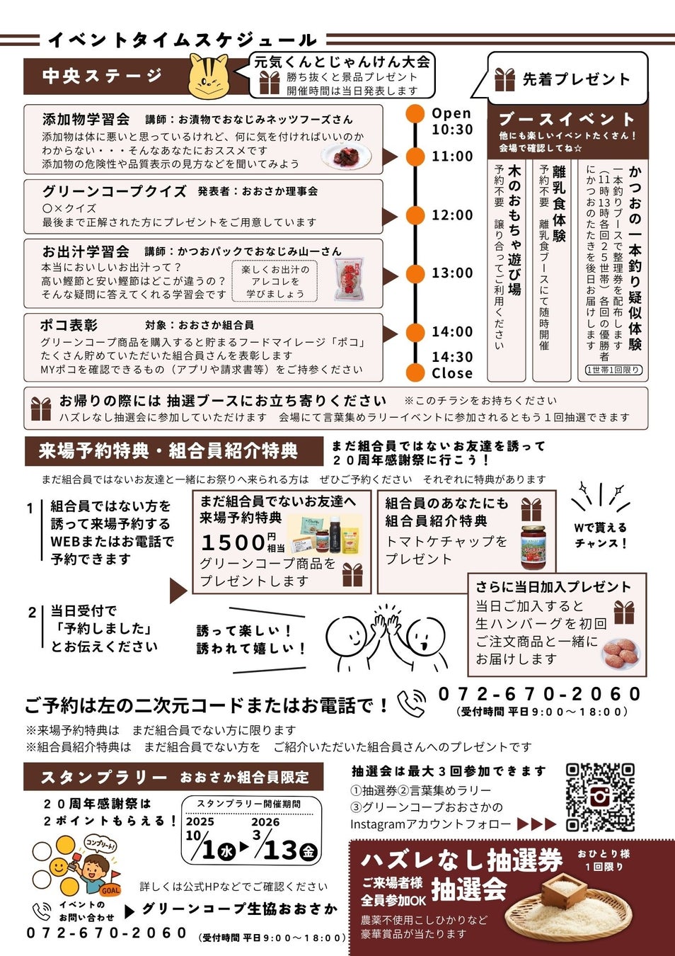 添加物学習会やお出汁学習会、先着100世帯限定プレゼント、ハズレなし抽選会など、さまざまな趣向を凝らした企画をご用意しています。室内会場のため、雨天決行です。