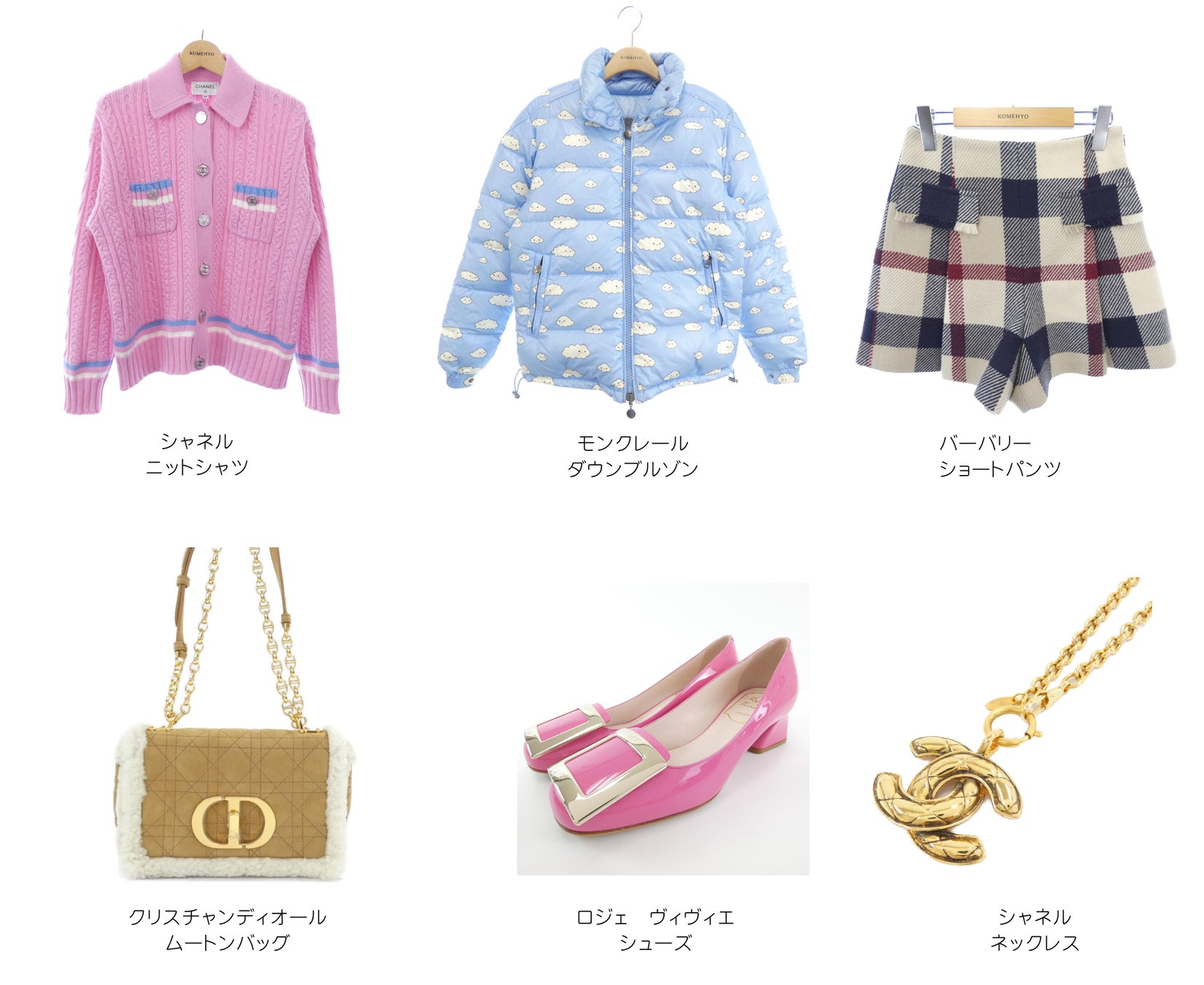 展示内容:シャネル、ディオール、ミュウミュウ 、バーバリーなどのファッションアイテム