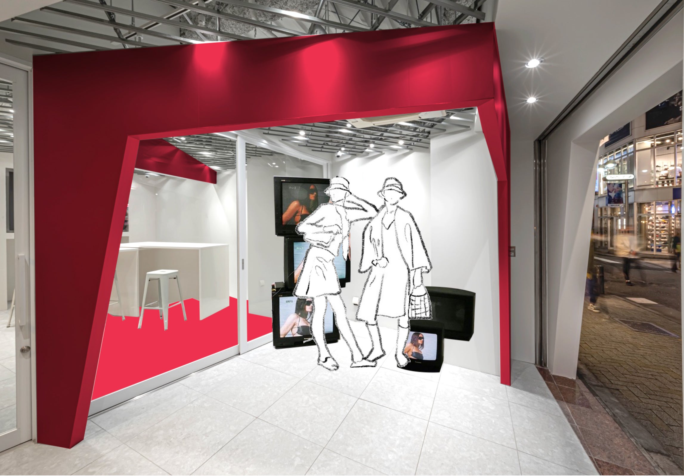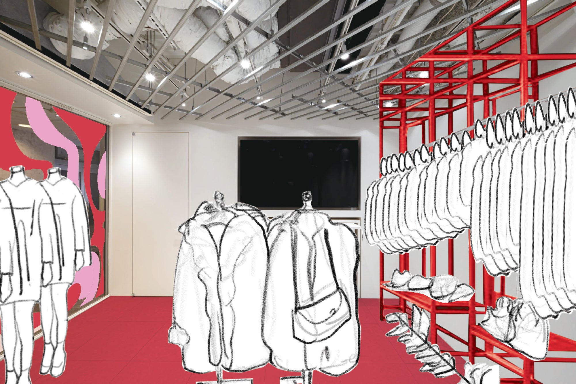 「アソブY2K」とは、2000年頃に流行したファッションの衣料やバッグなどを選んで、試着して、シ ョーウィンドウ内にて撮影できる 、体験型の “売らない ショップ です。Y2K ファッションとは2000年頃に流行した厚底ブーツやミニスカート、ネオンカラー等を取り入れたファッションのことです。レトロブームと相まって現代 の若い世代に刺さり、現在のトレンドと MIX されて、新たに自分を表現できる装いとしてY2Kファッションが注目されています 。