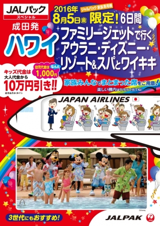 今年も飛びます!お子さま連れ限定 ジャルパック家族専用機でハワイへGO! 2016年8月5日(金)出発限定!