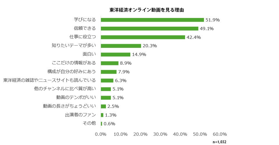 ・調査方法:モニター調査 東洋経済オンラインYouTubeチャンネルを2週間に1度以上見ている方