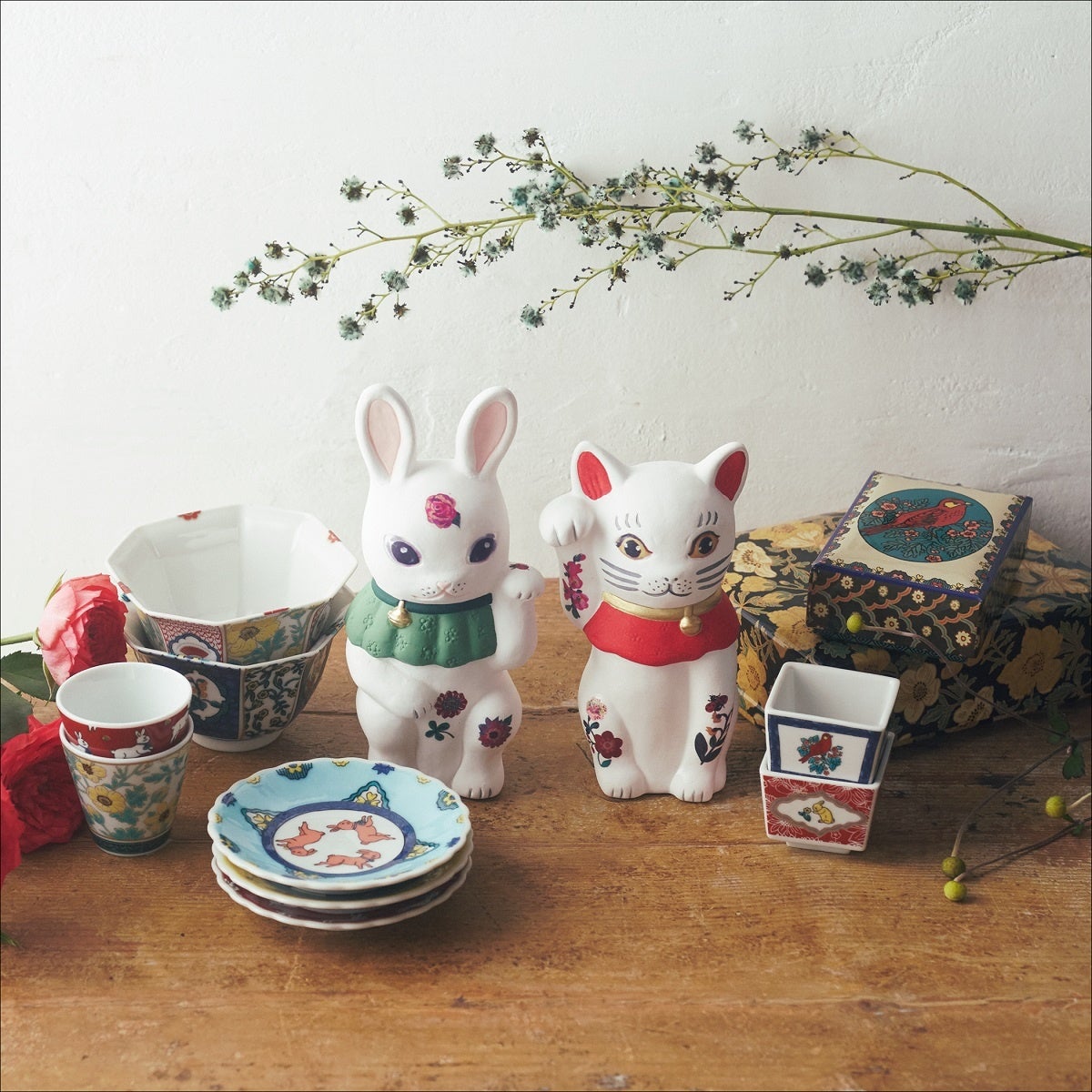 瀬戸焼の招きうさぎ・招きねこの置物は、限定店舗と公式オンラインストアで11月23日(水)から発売いたします。