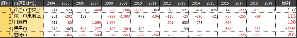 ・兵庫県では神戸市の中心街である中央区の中古値上がり額が大きい