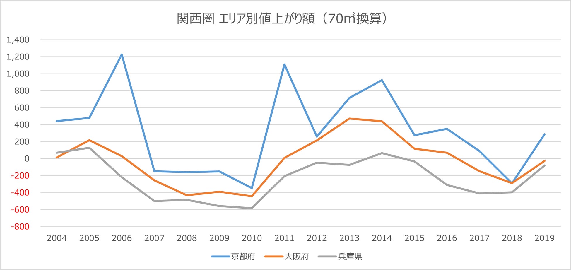 ・関西圏で中古値上がり額が最も高いのは京都府で、次いで大阪府、兵庫県となった