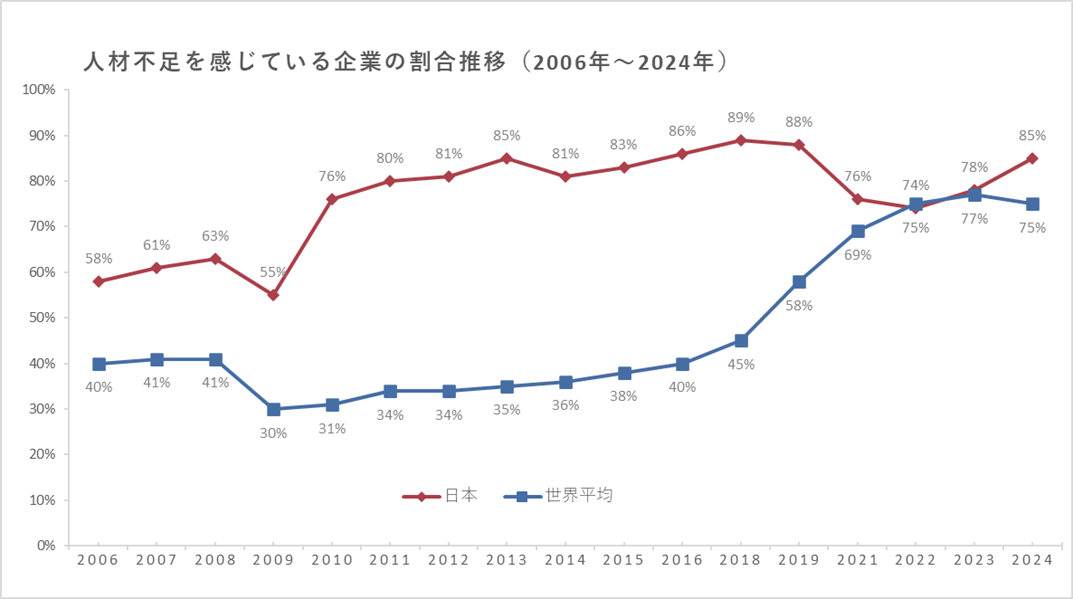※² 人材不足調査:マンパワーグループが世界41カ国と地域の雇用主等を対象に「人材確保の難易度」を尋ねた調査