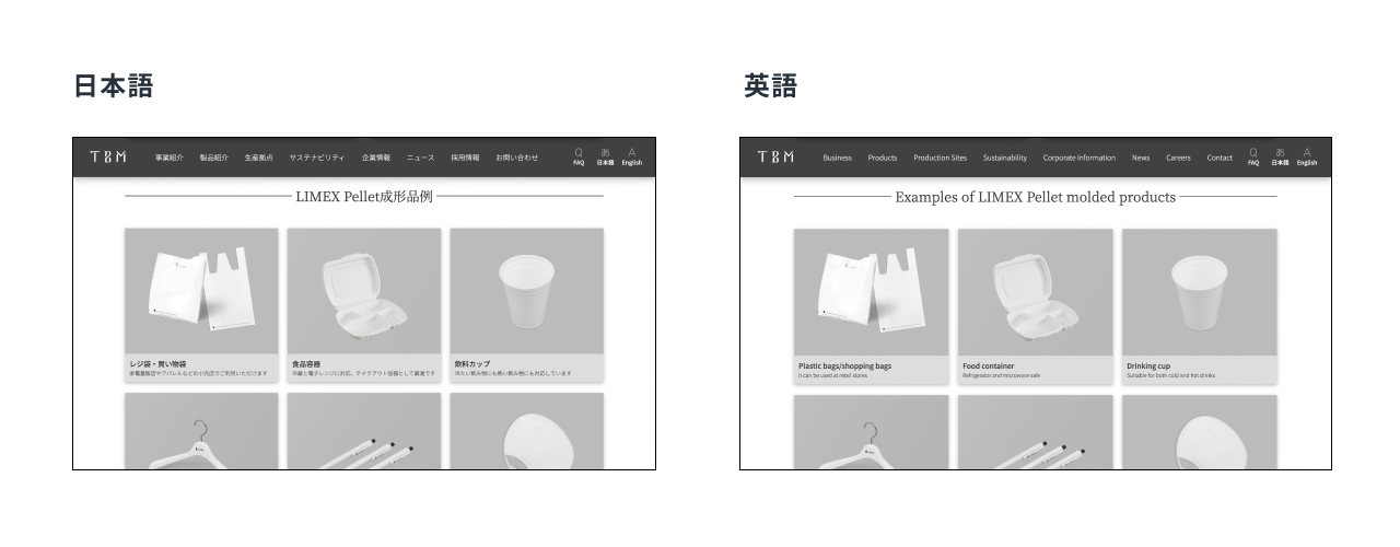 TBM のコーポレートサイトを英語・簡体字で表示できるようになりました。コンテンツを言語ごとに出し分けて、地域・ターゲットに合わせた多言語発信を行っています。