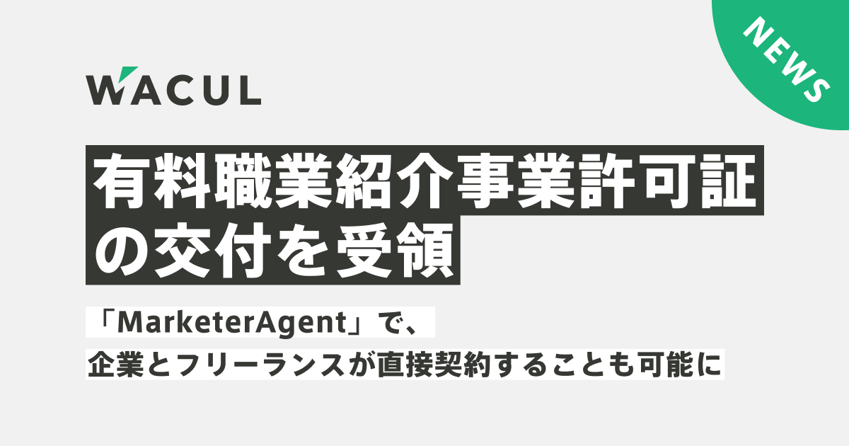 WACUL、有料職業紹介事業許可を取得。「Marketer Agent」で、企業とフリーランスの間に立ってサポートする形に加え、企業とフリーランスが直接契約することも可能に