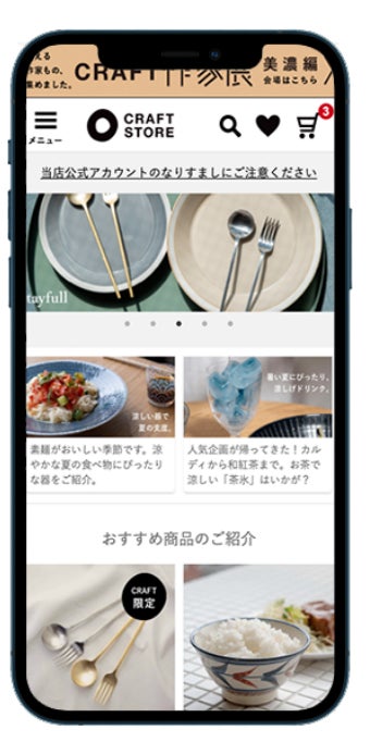 日本のものづくりに特化したオンラインショップ「CRAFT STORE」を運営。現在76ブランド700点ほどの商品を掲載。 2019年からスタートしたオンライン陶器市「CRAFT陶器市」は、全国12の産地54窯元、約1,300点以上のやきものが集まり、これまで40万人もの方々が訪れています。