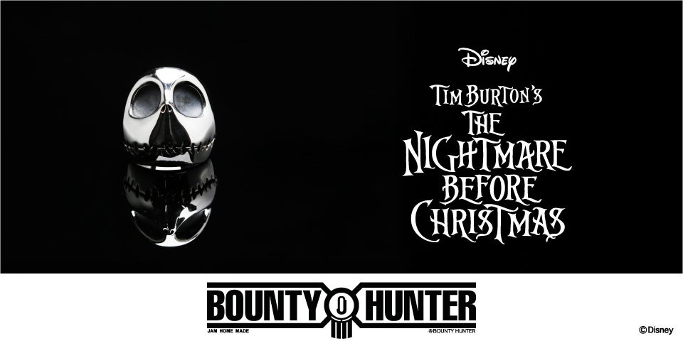 生活の中で普段よく耳にする、THE(ザ)。その意味は、「あの」や「その」だったり、「典型的な」「最も良い」などだが、モノゴトを最も強調したい時に使われる。6回目となるJAM HOME MADE x BOUNTY HUNTERによるディズニーを題材にしたカプセルコレクションは、全てをストレートに、真正面から直球でデザインした、THEを冠にしたエイジに関係ない、年齢や性別を問わないTHE THE NIGHTMARE BEFORE CHRISTMAS COLLECTION。アイテムはリング、ネックレス、ブレスレット、Tシャツの4種。立体になるリングとネックレスとブレスレットは、THEである為の再現性と着用バランスを考慮した。平面になるグラフィックは、THEである為の象徴として真正面。配色も絞り印象を強めた。