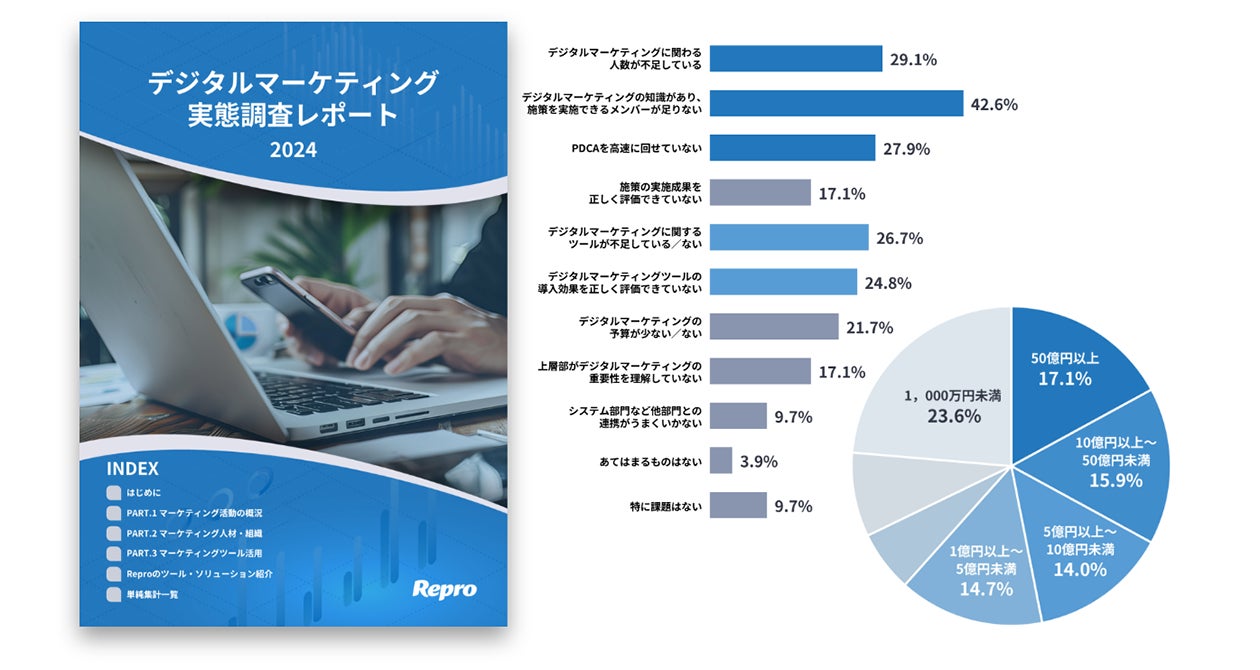 マーケティングソリューションの提供によりWebとアプリの収益最大化を支援するRepro株式会社(以下、当社)は、消費者向けWebサイト・サービスを保有する企業の事業・サービス責任者を対象に、「Webサイトの活用状況に関するアンケート」を実施いたしました。その結果と分析を「デジタルマーケティング実態調査レポート 2024」として発表いたします。