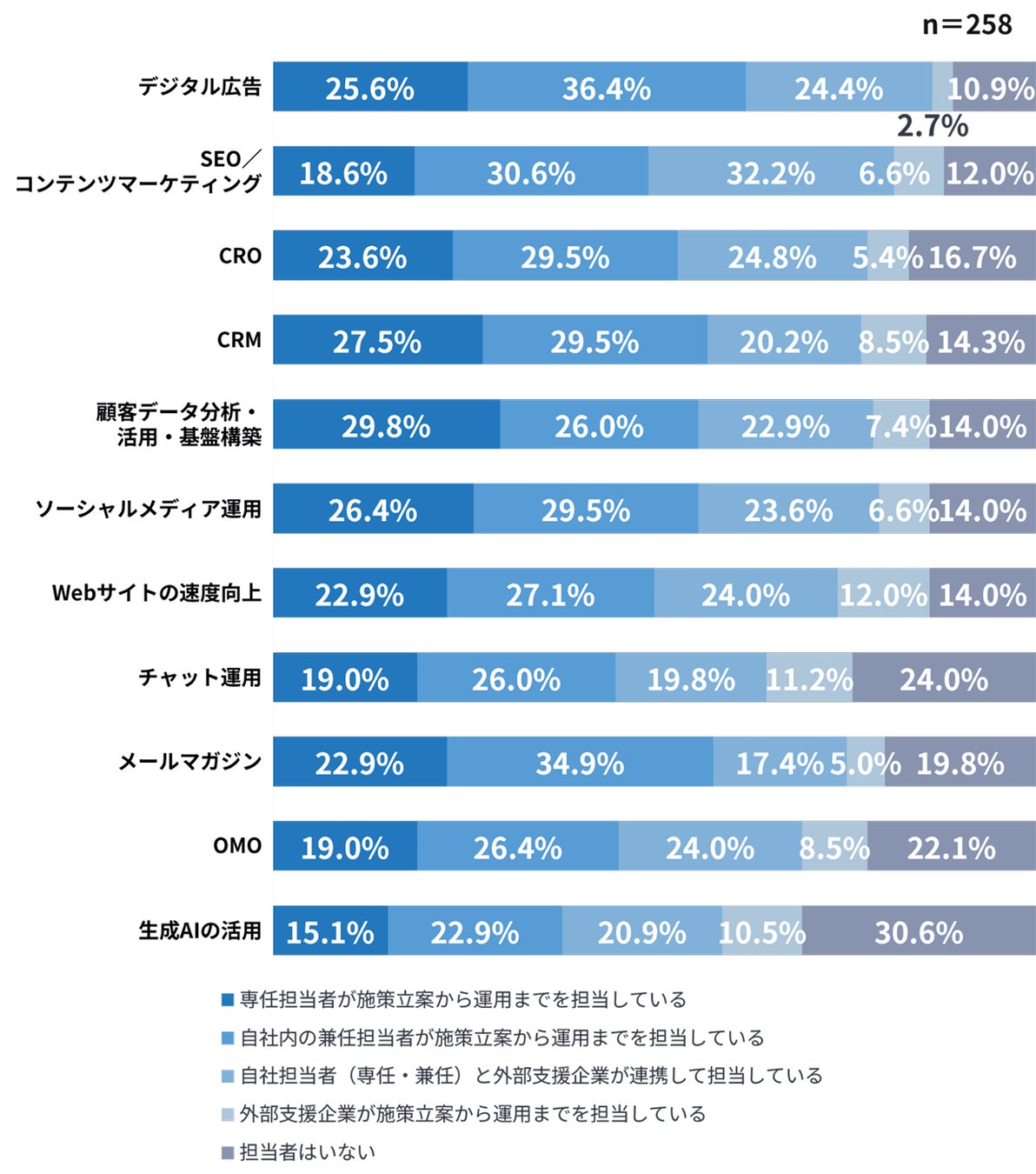 ※「専任担当者が施策立案から運用までを担当している」「自社内の兼任担当者が施策立案から運用までを担当している」の合算