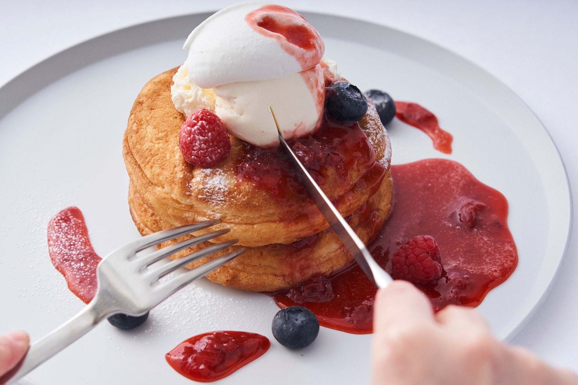 - ふわふわ・もっちり、ちょっぴりセイボリーなパンケーキ生地を活かす新たなメニューが、予約限定・月替わりで登場