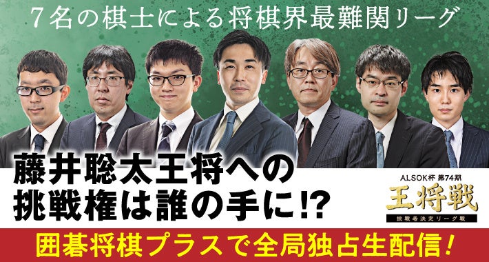 9月24日開幕! ALSOK杯 第74期王将戦 挑戦者決定リーグ戦』YouTubeチャンネル「囲碁将棋プラス」で全局独占生配信!!