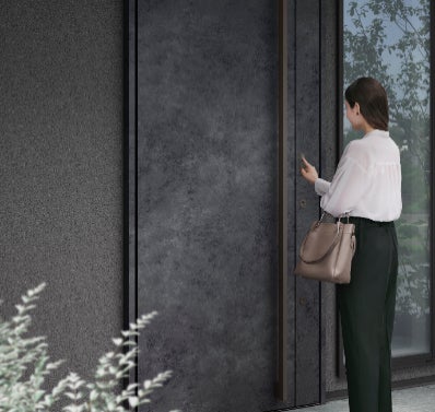 玄関ドアに近づくと、センサがスマートフォンやリモコンを感知して、自動でカギと扉がオープンし、ひと足先に未来の暮らしをお届けします