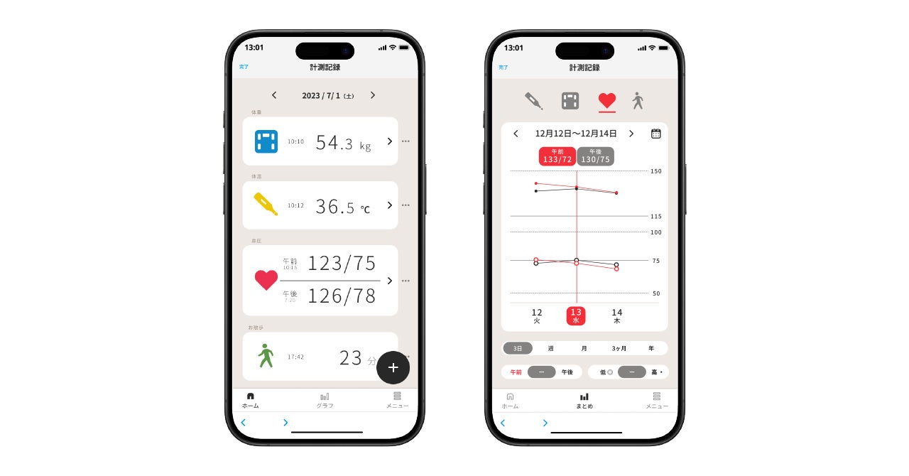 測り忘れ防止、記録の手間軽減により健康管理の習慣化をサポートします