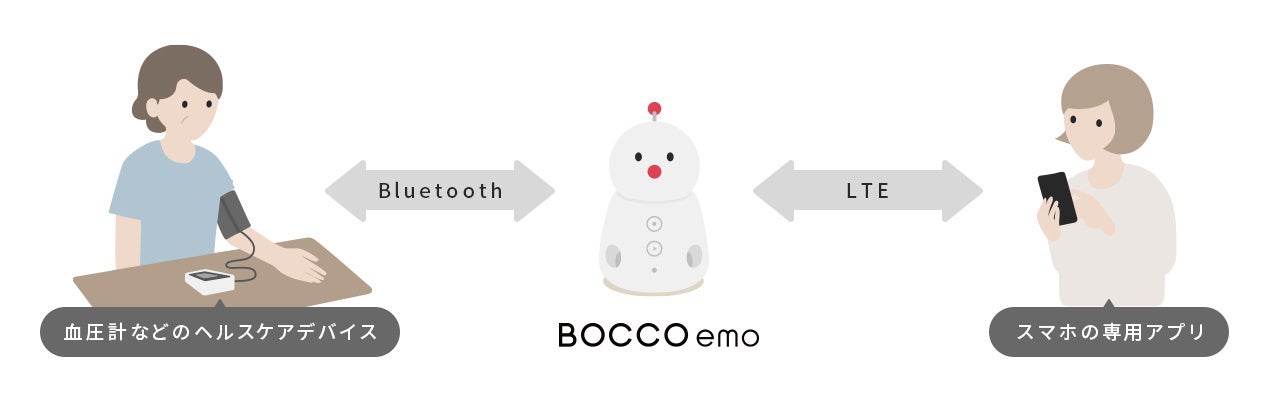コミュニケーションロボット「BOCCO emo」に、日々の血圧測定や記録を楽しくする新機能。ヘルスケア機器との無線接続が可能に
