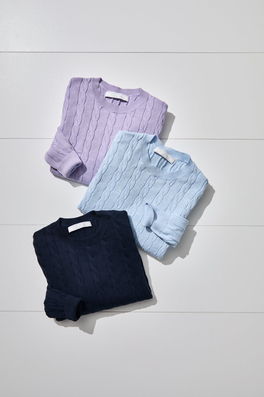 毎年人気のケーブル編みのセーターは、時代を超越して愛される上品でクラシカルな佇まいから、近年ではトレンドアイテムとしても注目を集めています。ケーブル部分の厚みを抑えた膨張感の無いスマートなシルエットと艶やかな質感で、気取らないデイリーなスタイリングを格上げする一枚。稀少なスーピマコットンならではの発色の良さを楽しめる、綺麗なカラーを揃えました。薄手なのでジャケットやアウターのインナーにもおすすめです。