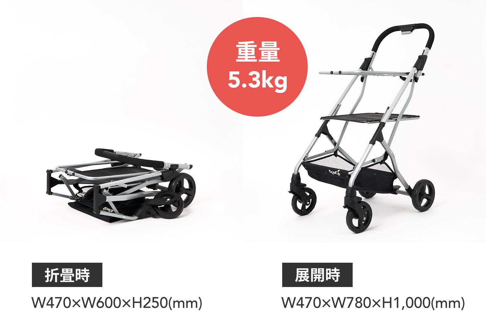 EcoCa プレミアの本体重量は、約4.35kg。従来品に比べ、約1kgの軽量化に成功しました。より取り回しがしやすく、車のトランクなどへの積み下ろしもラクラク。しかも耐荷重はそのままに、軽量化することに成功しました!従来品同様、荷物は上下合わせて30kgまで乗せることが可能です。(※上段25kg、下段5kg)