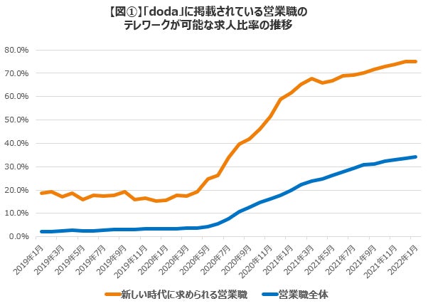 転職サービス「doda」、「第3回”新しい時代に求められる営業職”に関する調査」を実施「インサイドセールス」「カスタマーサクセス」職のテレワークが可能な求人は3年間で約4倍に上昇
