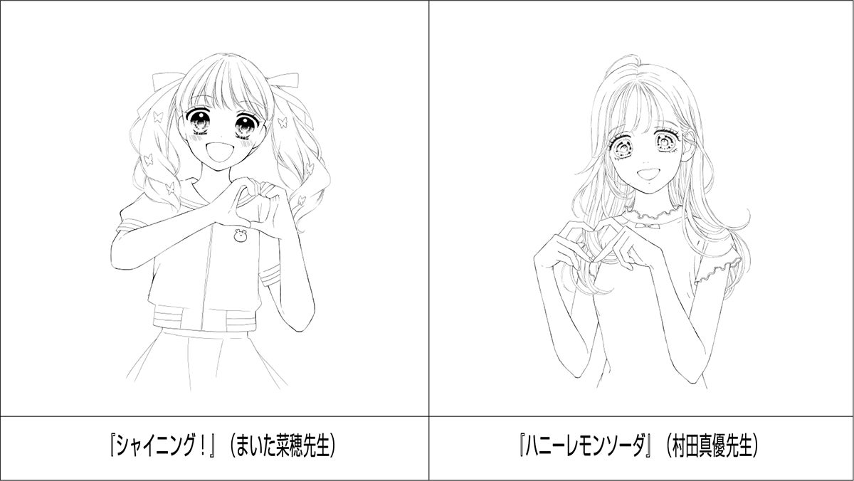 ワコムのブースでは、まいた菜穂先生の『シャイニング!』 (小学館『ちゃお』掲載)と村田真優先生の『ハニーレモンソーダ』(集英社『りぼん』掲載)の線画をご用意しています。参加者はお好きな作品を1つ選び、プロのまんが家も使っている液晶ペンタブレットで色を塗って楽しむことができます。色を塗ったイラストは、缶バッジにしてお持ち帰りいただけます。