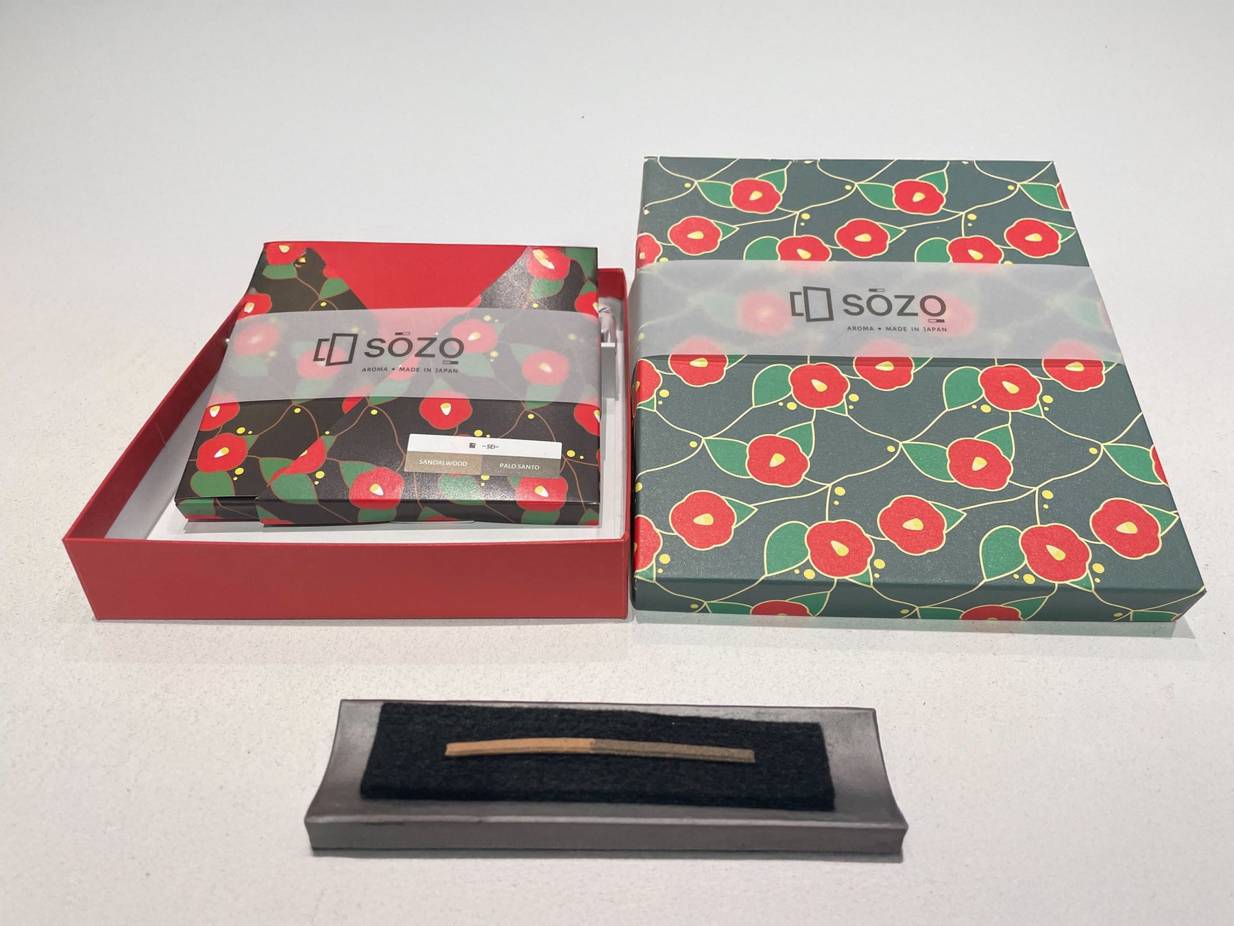 1本で2種類の香りを楽しむことができるお香「SOZO」と、400年にわたり淡路島で製造される淡路瓦で作られた専用プレートのセット。スペイン語で「聖なる木」と言われるパロサントとサンダルウッド(白檀)の2種の香りで、この時期、イルミネーションの灯りと合わせてお楽しみいただきたいお香です。ENGAWA ASAKUSAオリジナル、15セット限定の商品。