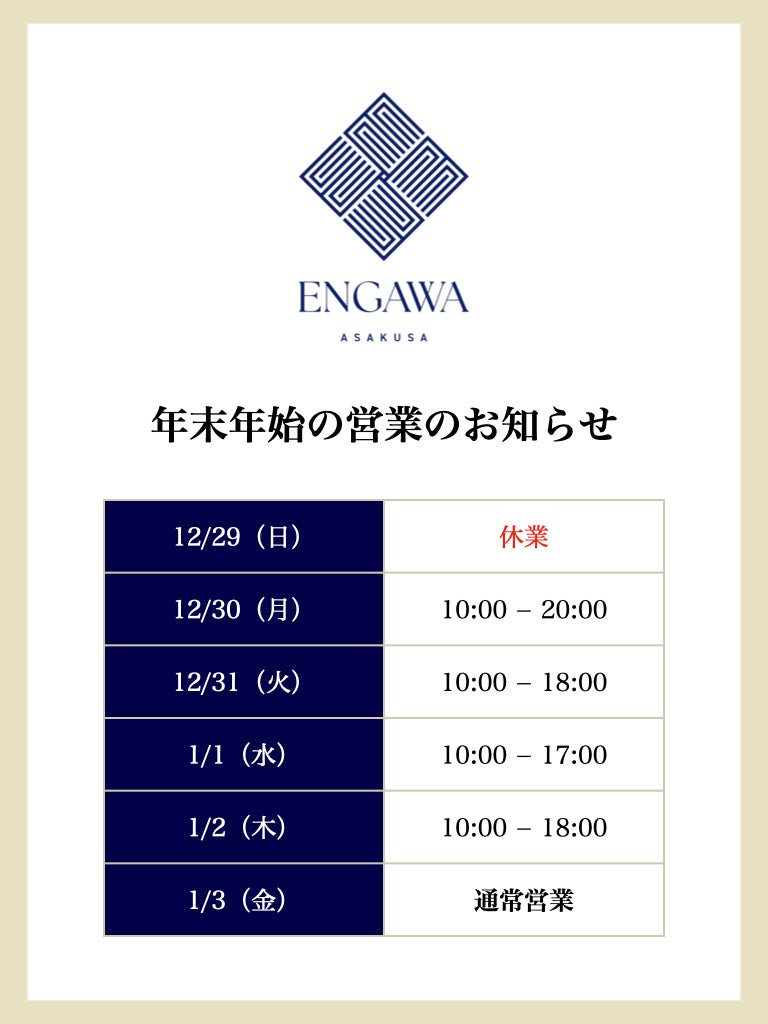 ■ 「ENGAWA ASAKUSA」年末年始の営業について