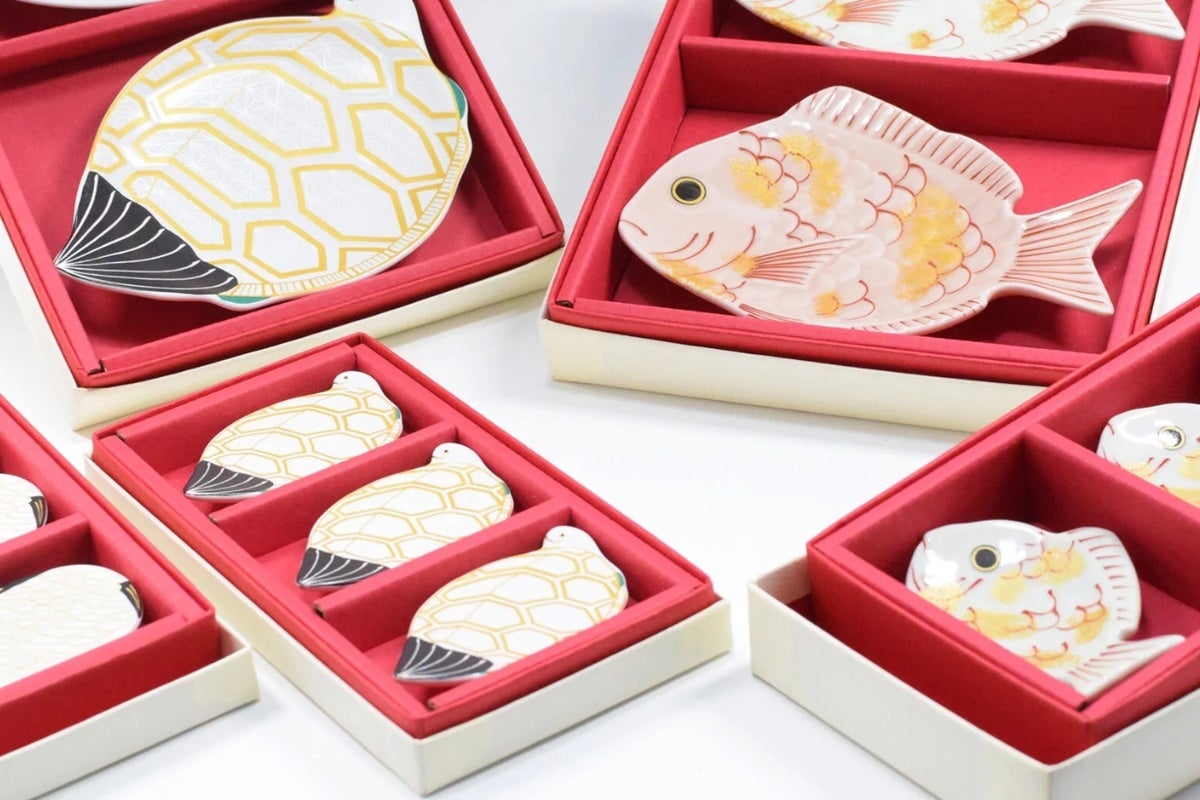 ・銘々皿ギフト(白鯛、鶴、亀)各¥2,860(税込)