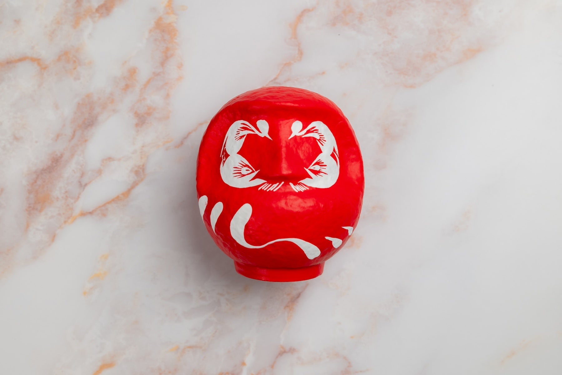 江戸時代から伝わる技法を受け継いだ伝統的な「高崎だるま」を現代的なデザインで。だるまの正面に描かれた時の流れを示す6本のラインは、過去から未来へと向かう姿を象徴しています。