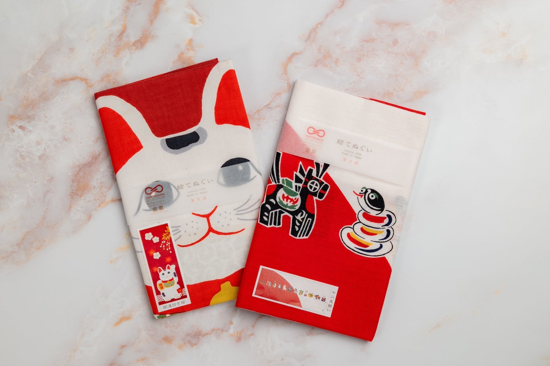 濱文様 絵てぬぐい<開運招き猫>、<12干支>の2種