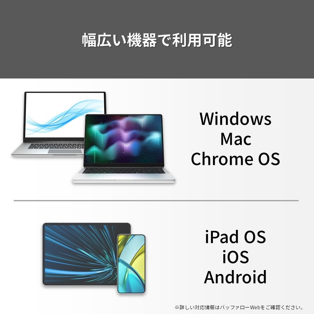 本商品はBluetooth® 5.0対応のマウスです。Bluetooth® 5.0以前の従来規格の機器も使用でき、タブレットや薄型PCなどのBluetooth® 機器に幅広く対応します。対応品との接続の際はUSBレシーバーが不要なためUSBポートをふさぎません。