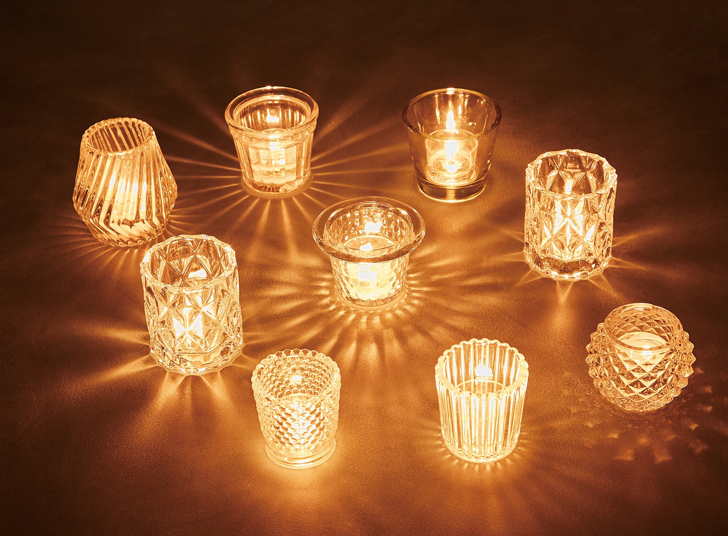 カッティングの施されたキャンドルホルダーに入れて使うと、さらにガラス越しに広がるキャンドルの灯りの魅力をお楽しみいただけます。