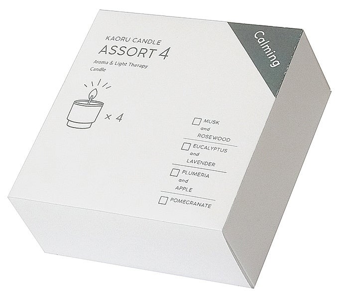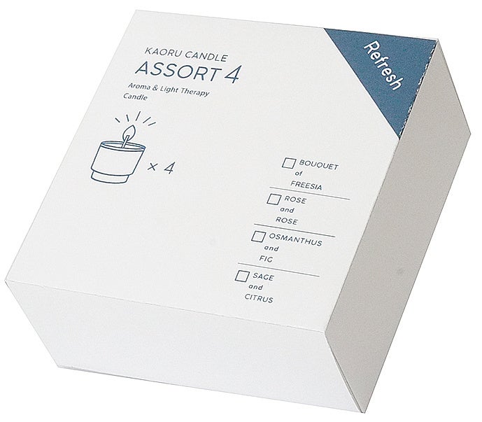 「香るキャンドルアソート4」は1箱に4種の香りの小さなキャンドルが1個ずつ入ったセット。