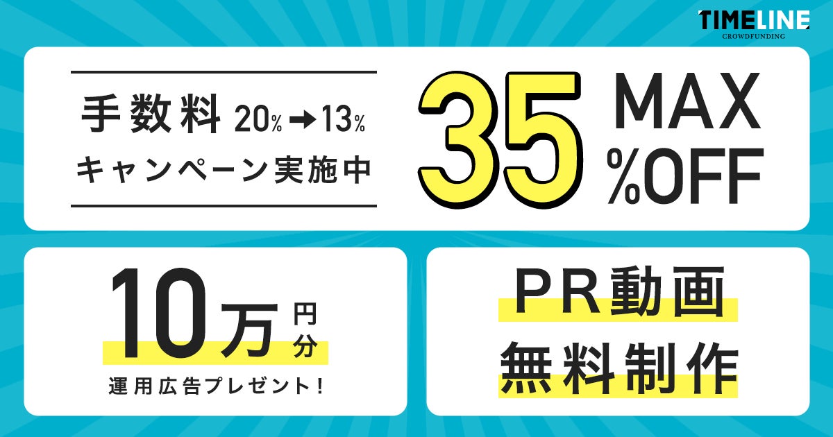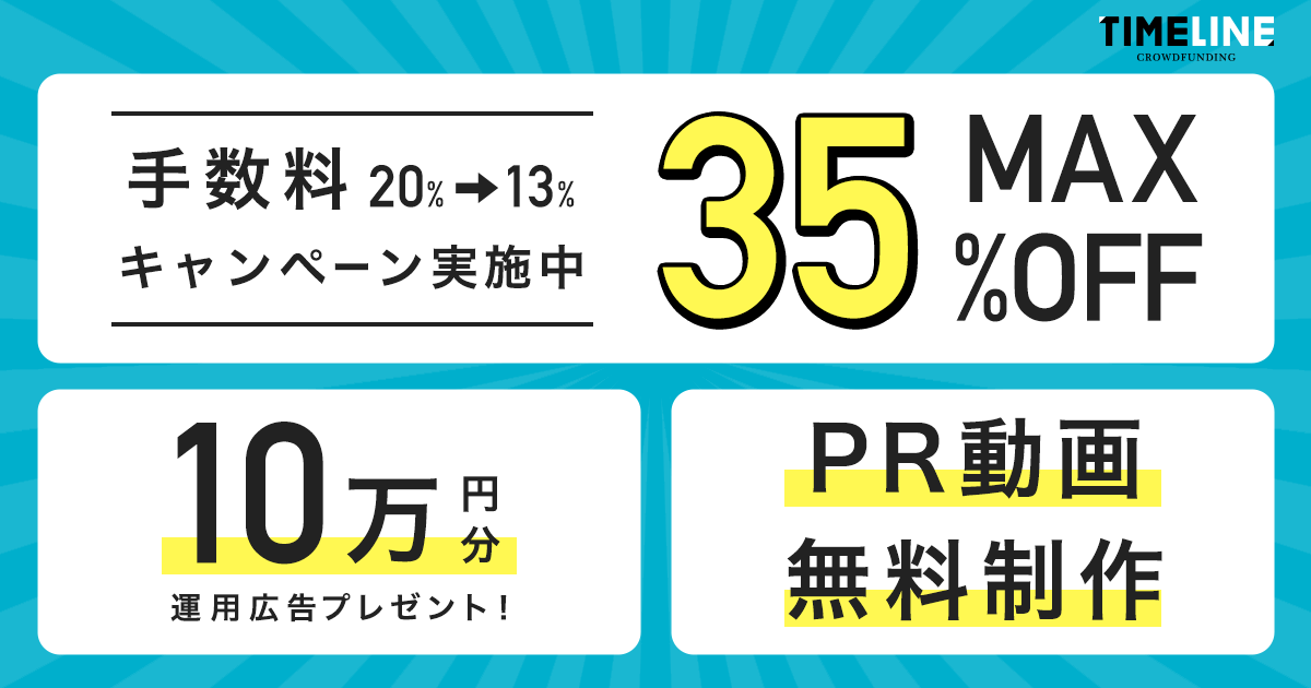 『TIMELINE クラウドファンディング』手数料最大35%OFFキャンペーンスタート!さらに、動画制作に加え、集客サービスとして『TIMELINE』での配信と広告掲載10万円分も無料プレゼント!