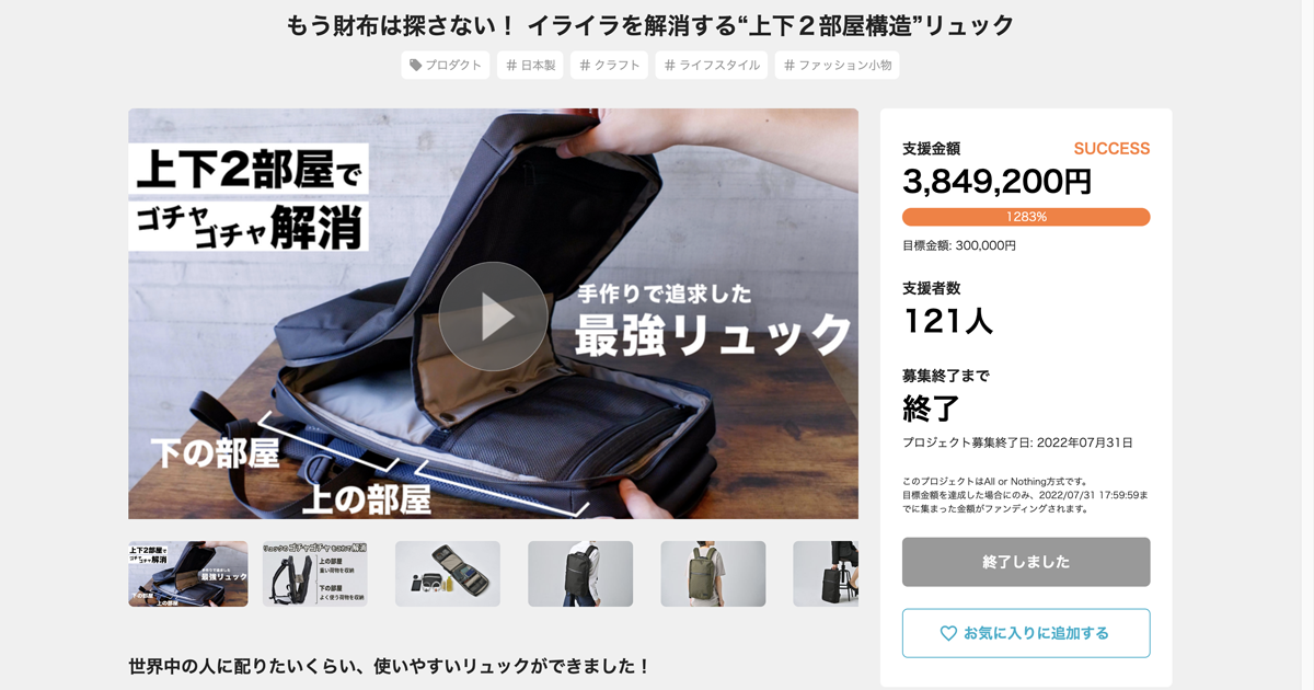 - 目標金額 1283%達成!支援金額385万円のプロジェクトも誕生