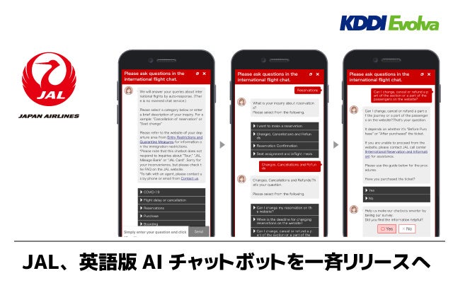 JALに導入した英語版AIチャットボット「AIChat」は、KDDIエボルバで初の提供となります。