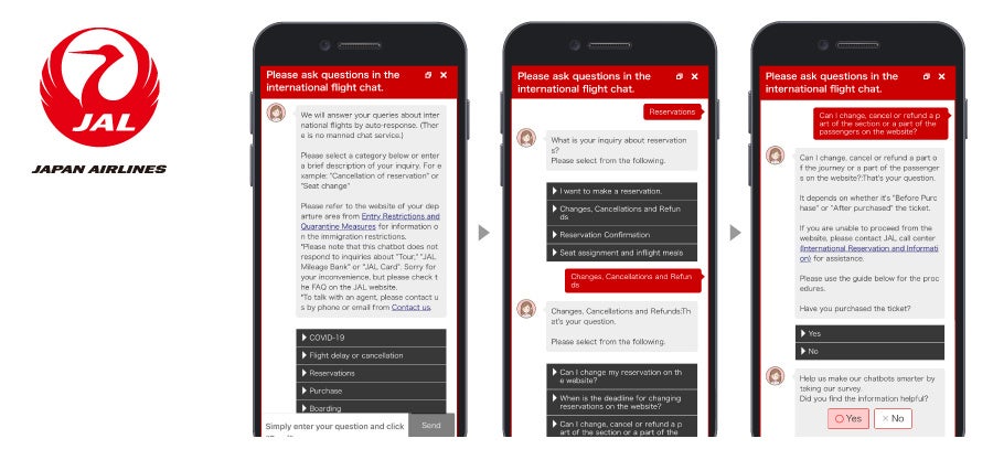 JAL、世界26地域・Webサイト47ページに英語版AIチャットボットを一斉リリース ~海外入出国緩和に合わせて最短2か月で導入、回答範囲カバー率92%へ
