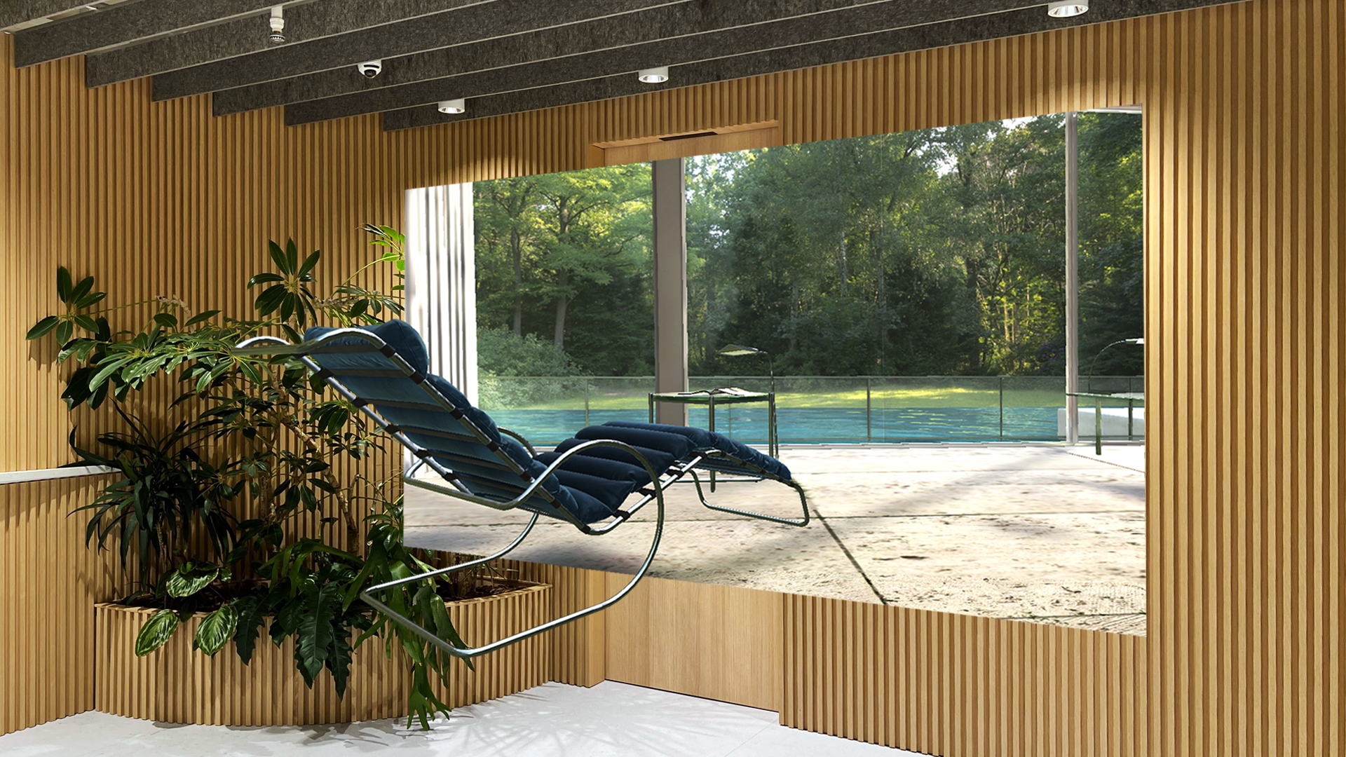 2Dの平面映像から、3Dオブジェクト(家具)が飛び出すような表現