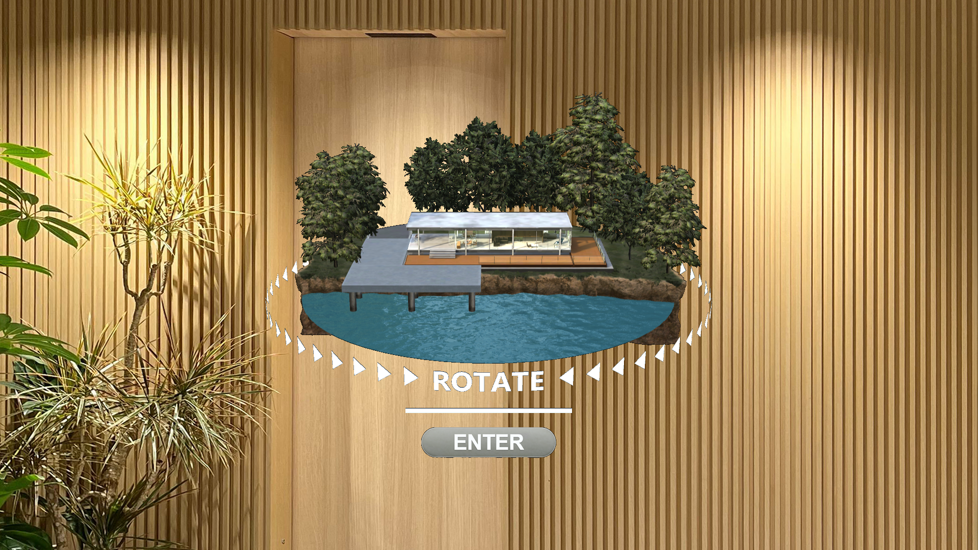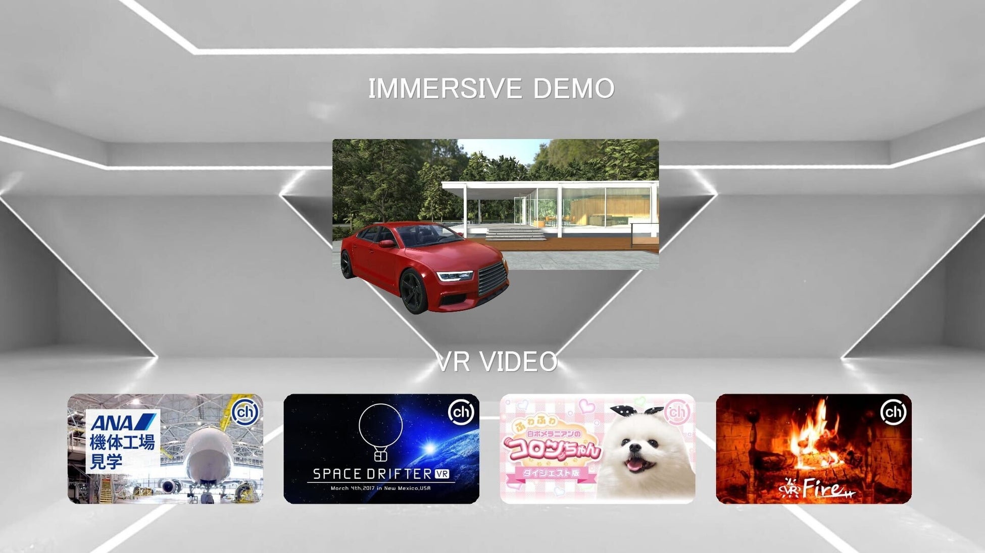 各XR端末に合わせて、ハンドトラッキングやコントローラーにも対応し、3Dオブジェクトを回転、拡大・縮小したり、サムネイルの選択、動画再生などあらゆる操作も可能となっています。また、ARモードでの3Dオブジェクトの表示とVRモードへの没入体験もシームレスに切り替え可能で、不動産のご案内のようにミニチュアの建物を俯瞰で眺めたり、CG空間で実際の現地の雰囲気をご体験いただくことも可能です。