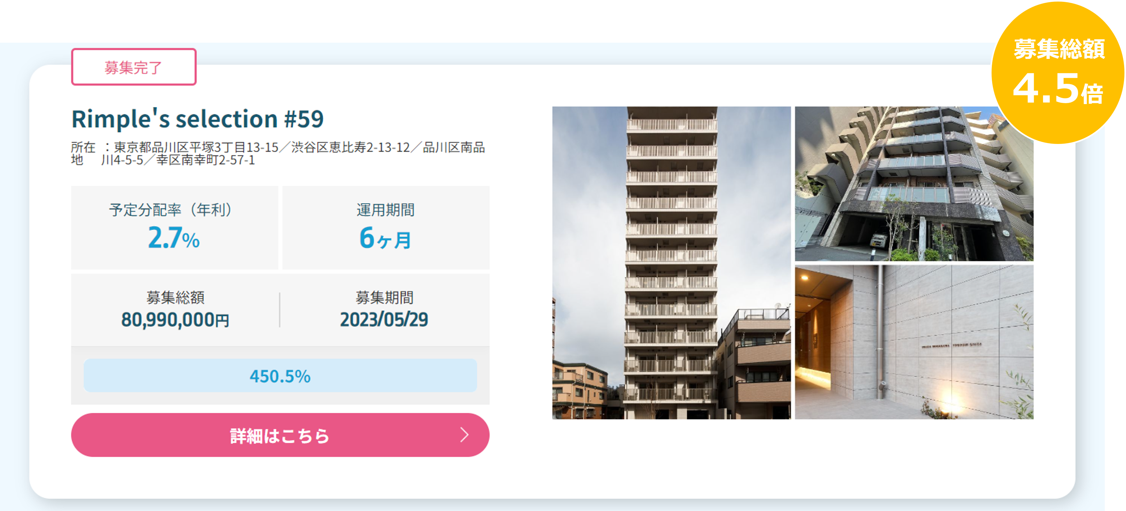 Rimple’s Selection#59 募集総額450.5%の3.64億円の応募