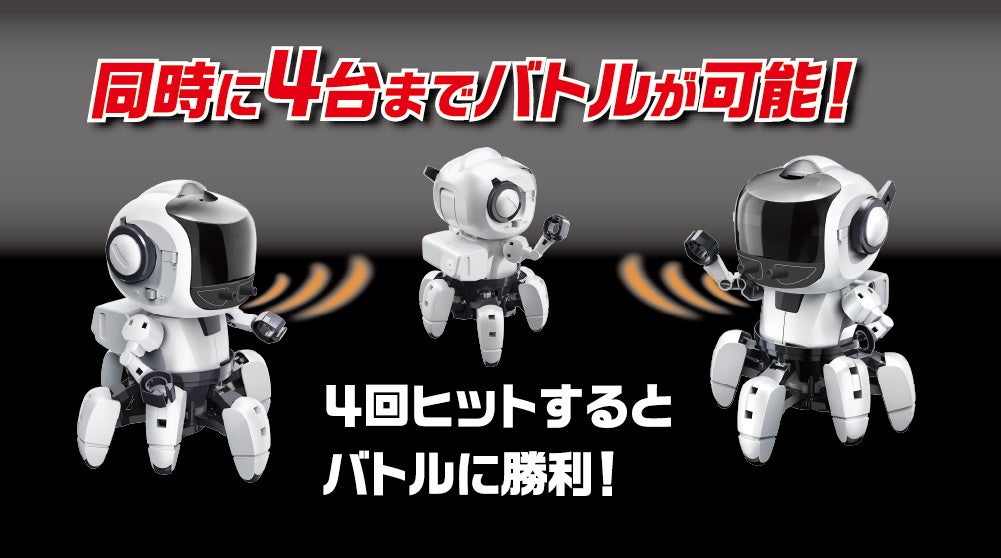 エレキットの6足歩行人気ロボット・フォロシリーズより4台同時にバトルができ、リモコン操作で動く「リモフォロ」が新登場。赤外線信号でロボット本体を前後左右、思いのままに動かすことができます。