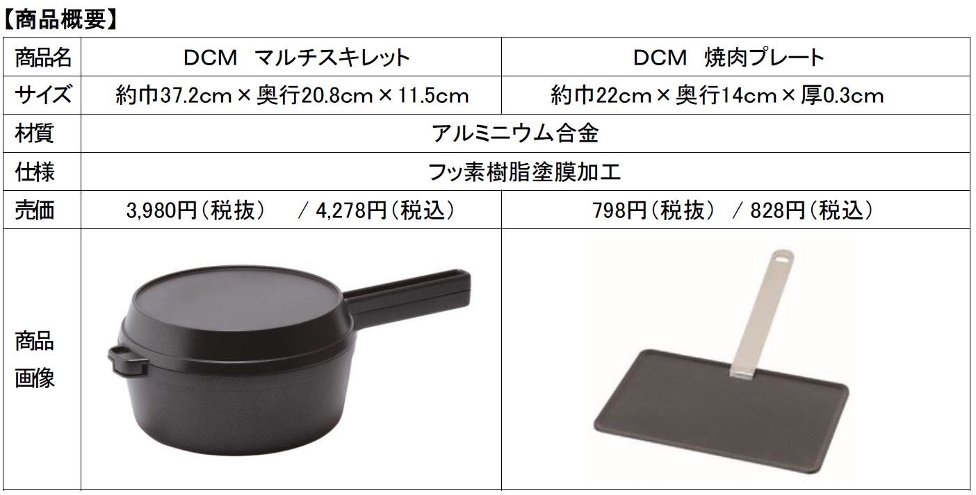 全国でホームセンター事業を展開するDCM株式会社 東京都品川区、代表取締役社長: 石黒靖規以下、DCM)は様々なキャンプ料理に活用できる「DCM マルチスキレット」 「DCM 焼肉プレート」を2022 年4月15日(金)より、全国のDCMグループ店舗(DCM・DCMカーマ・DCMダイキ・DCMホーマック・DCMサンワ・DCMくろがねや及びケーヨーデイツー、一部店舗を除く)にて発売します 。