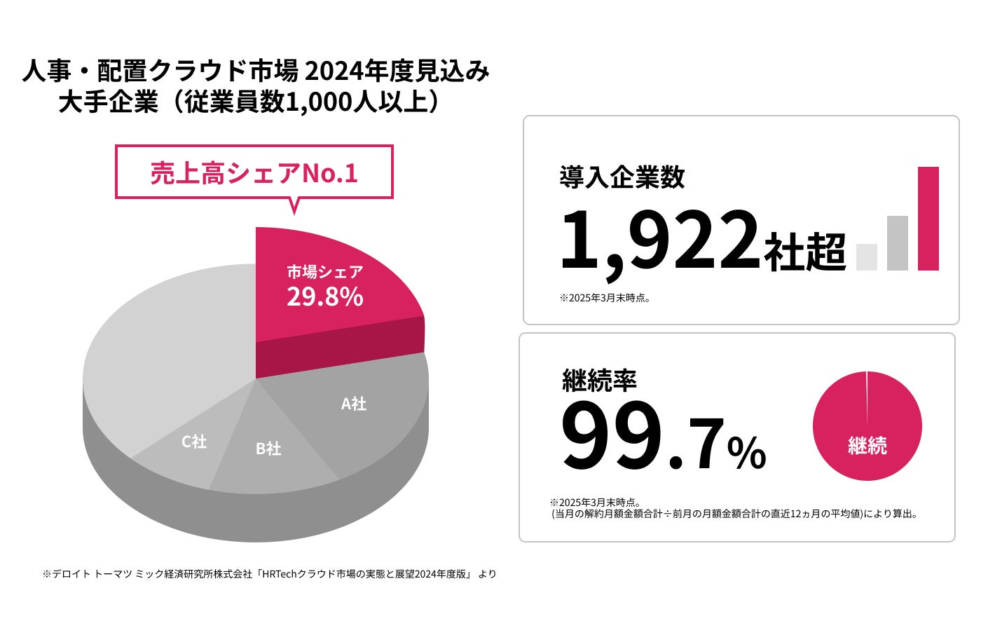 ※上記、市場シェアに関しては、デロイト トーマツ ミック経済研究所株式会社が発行している「HRTechクラウド市場の実態と展望2024年度版(https://mic-r.co.jp/mr/03350/)」に記載された内容を引用したものです。