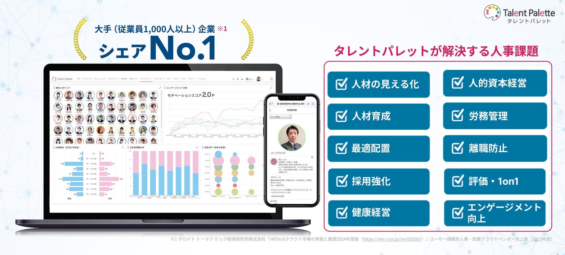 タレントパレット、大手企業市場で人事・配置クラウド大手実績シェアNo.1を獲得