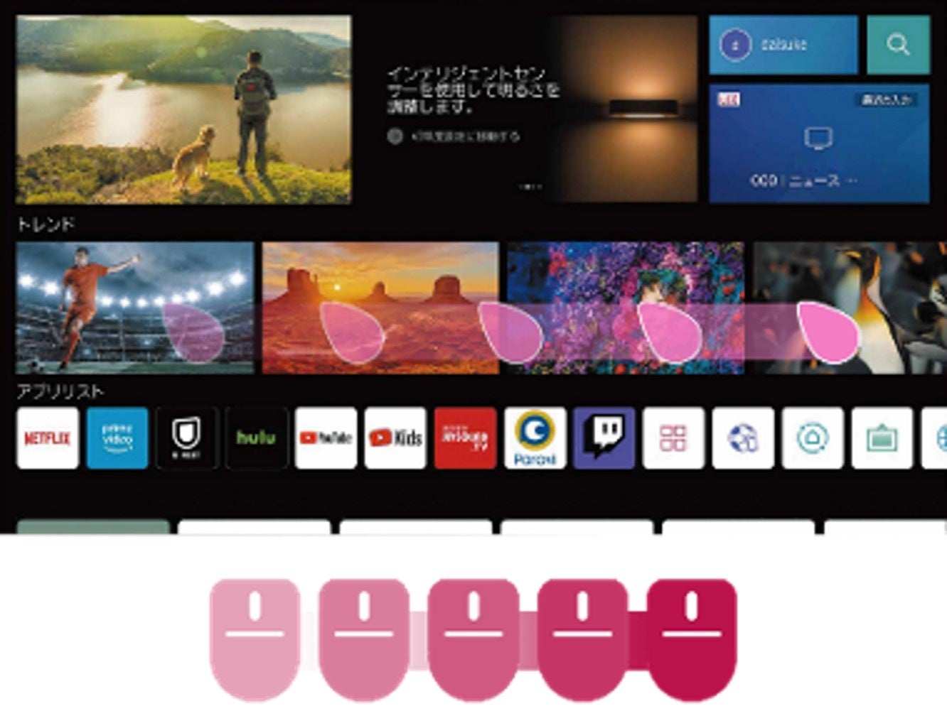 また、アカウントを登録することで、アカウントごとに視聴傾向や人気コンテンツからwebOS上にお勧めのコンテンツを表示します。