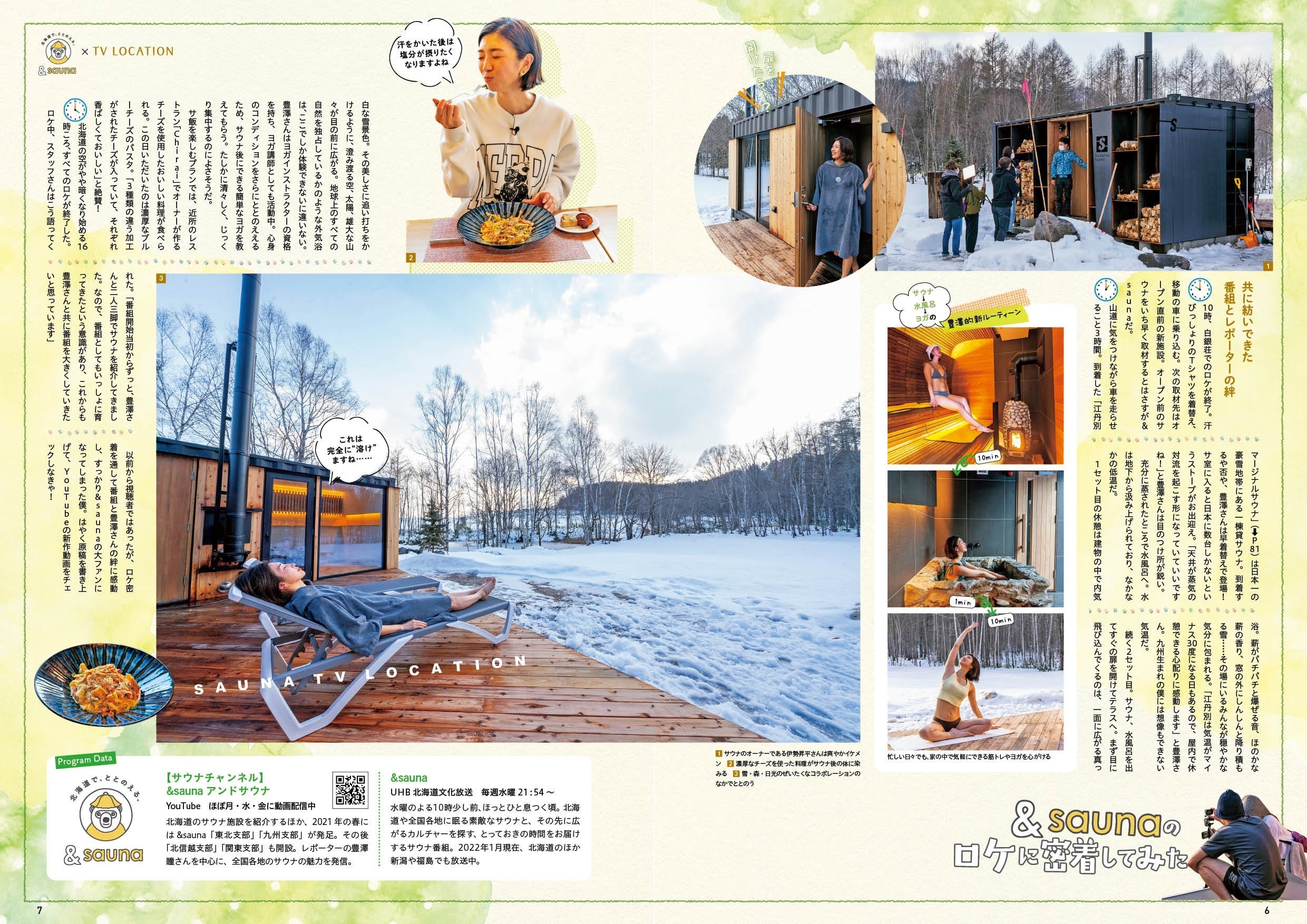 北海道発の人気サウナ番組『&sauna』のロケに密着したり、日本のフィンランド式サウナが北海道を起源とする説を調査したり、国産のヴィヒタ農家に潜入したり……施設紹介のほかにも気になる企画が盛りだくさん!どれも北海道のサウナシーンの盛り上がりを感じられるような、読み応えのある記事になっています。巻頭にはタナカカツキ先生、巻末にはヒャダインさんのサ旅エッセイも掲載。