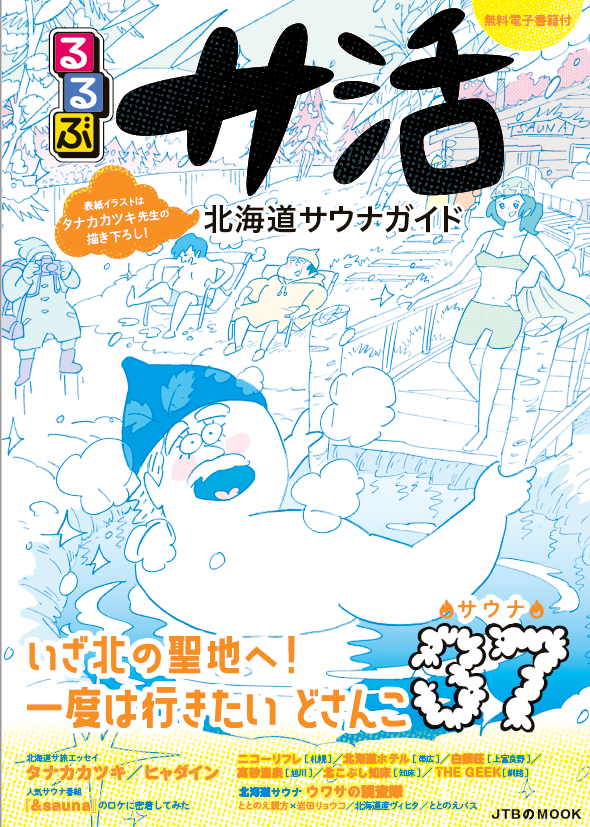 表紙のイラストは、首都圏版に引き続き人気マンガ『サ道』の作者であるタナカカツキ先生の描き下ろし!凍った湖に穴を開けて水風呂代わりにする「アヴァント」は、広大な土地と自然を有する北海道ならではの体験です。イラストの男性も、その刺激的な水風呂に驚きの表情を隠せません。