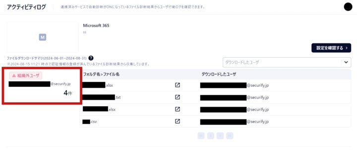 定期的にアクティビティログを確認することで、無断での情報持ち出しが発生していないかを確認できます。