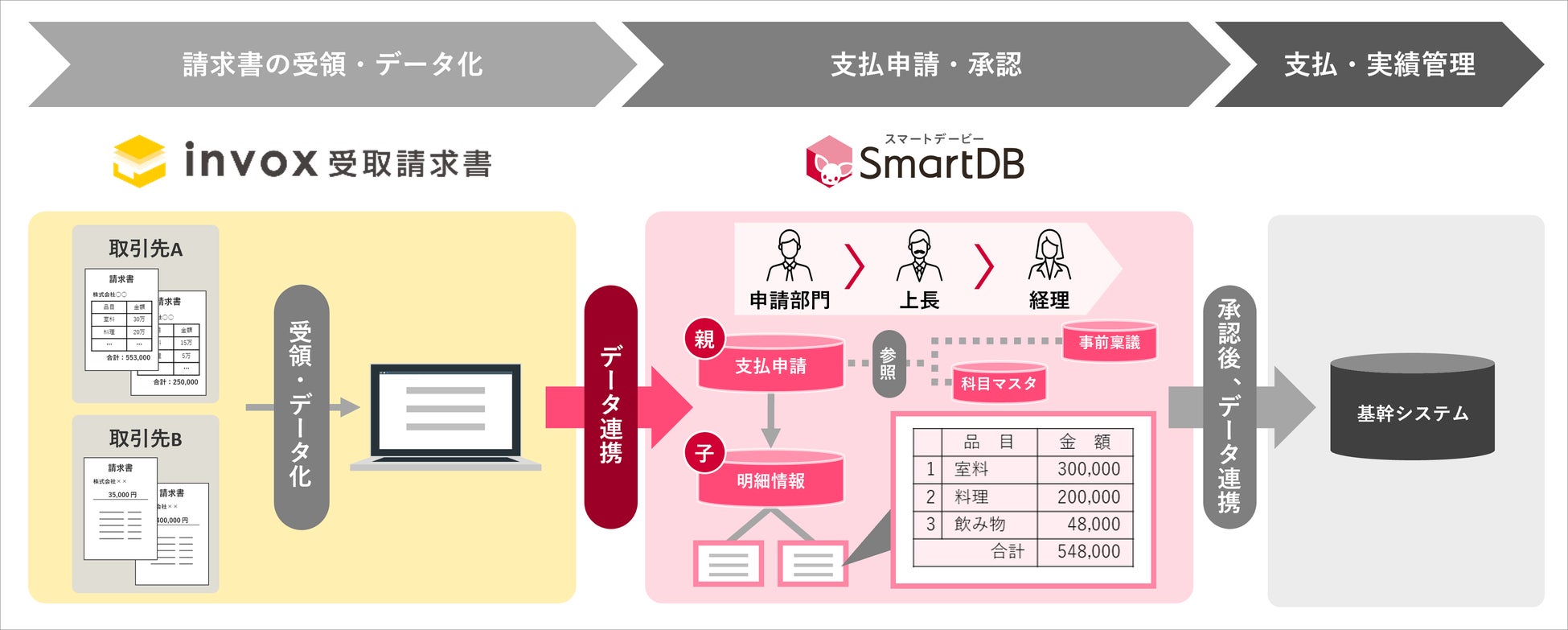 【イメージ:invox受取請求書とSmartDB(R)の連携】