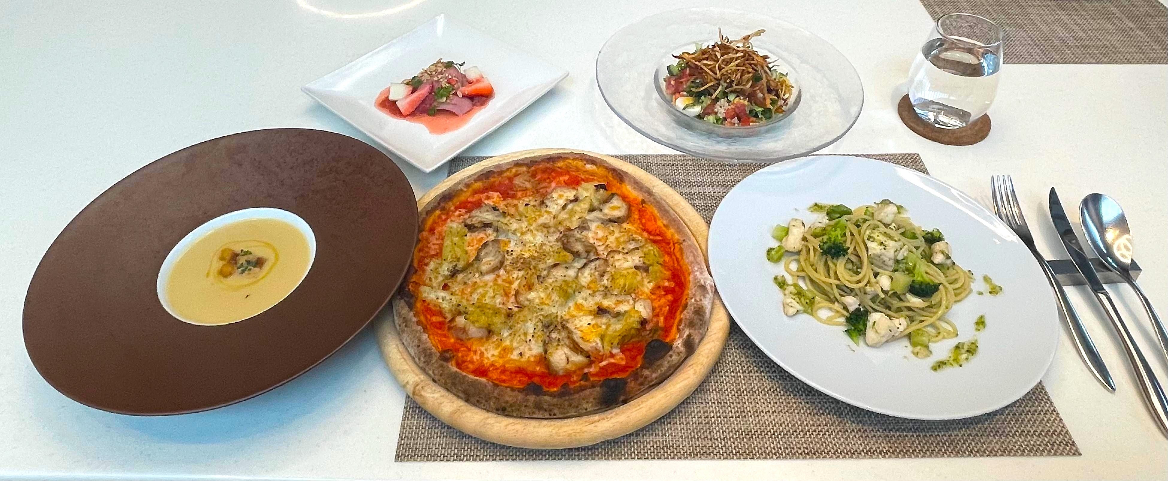 今年は、うずらの卵の殻をまいた畑で育った”うずらいも”のポタージュや、ブロッコリーを使ったパスタなど、5品が提供されています。